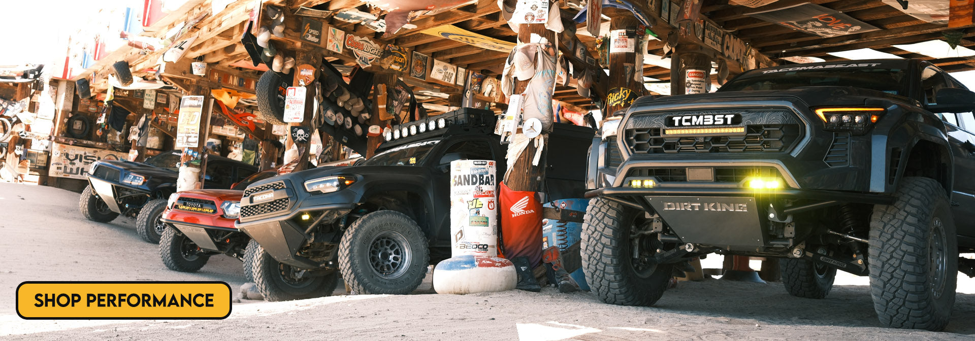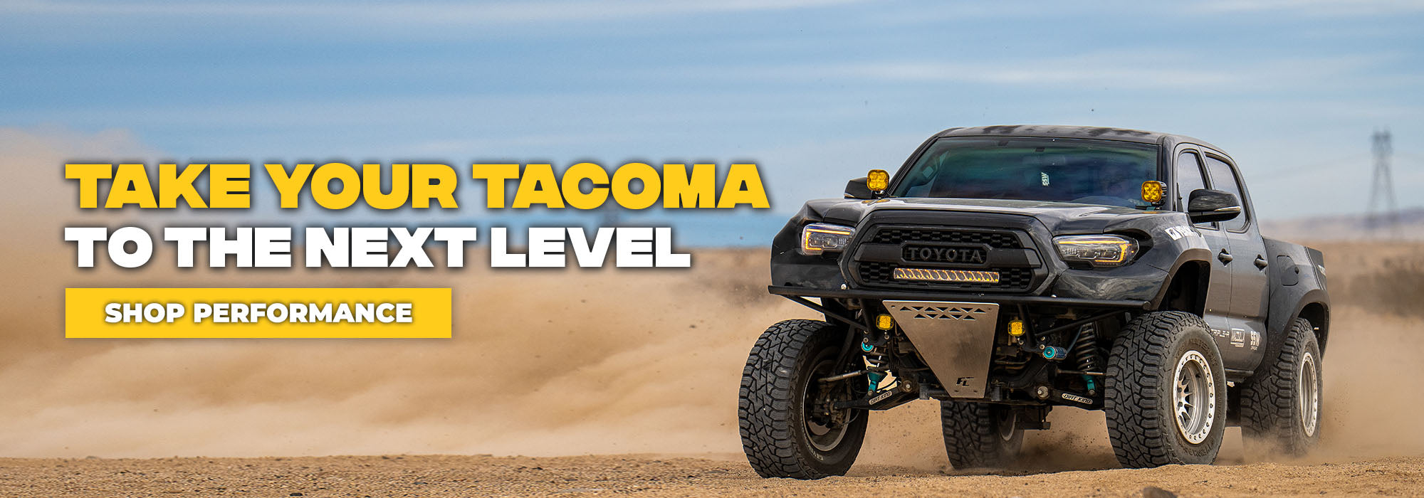 Upgrade your Toyota Tacoma with top-quality off-road parts and accessories built for performance and durability. Whether you’re tackling rough trails or enhancing your daily driver, find the best lift kits, bumpers, skid plates, rock sliders, LED lighting, bed racks, and more. Shop trusted brands like King Shocks, CBI Offroad, Dirt King, Baja Designs, and Alpha Rex for premium Tacoma accessories designed to handle any adventure.