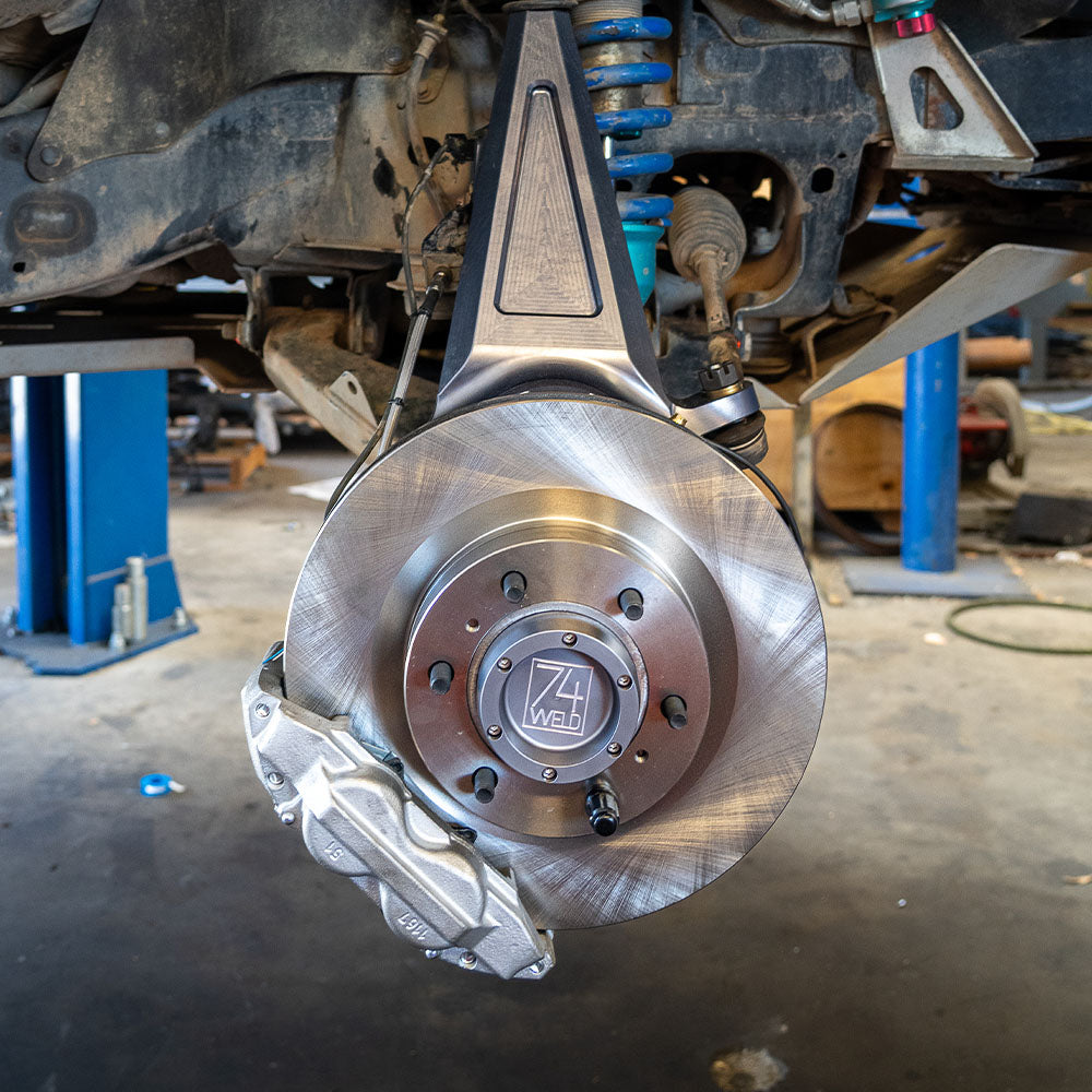 Rear disc brake conversion with larger front calipers and rotors included.