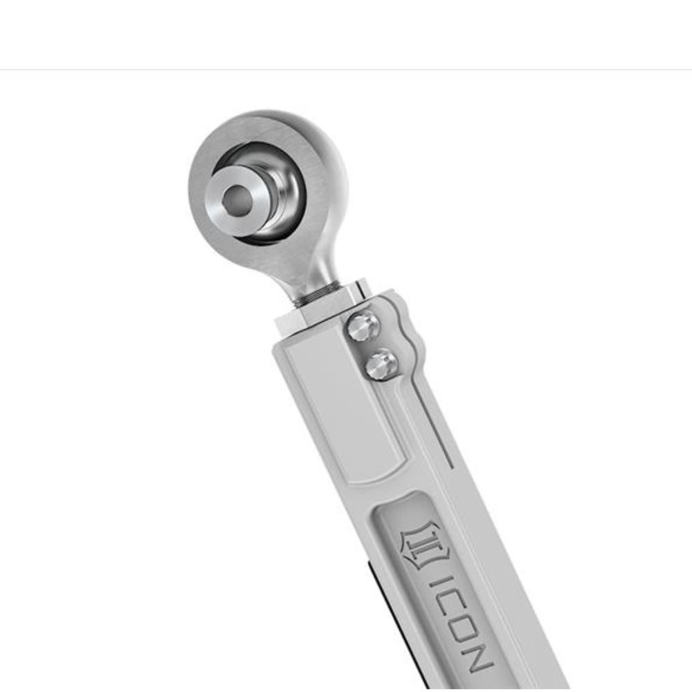 On vehicle adjustment for different ride heights and pinion angles using ICON's Double Adjuster System.