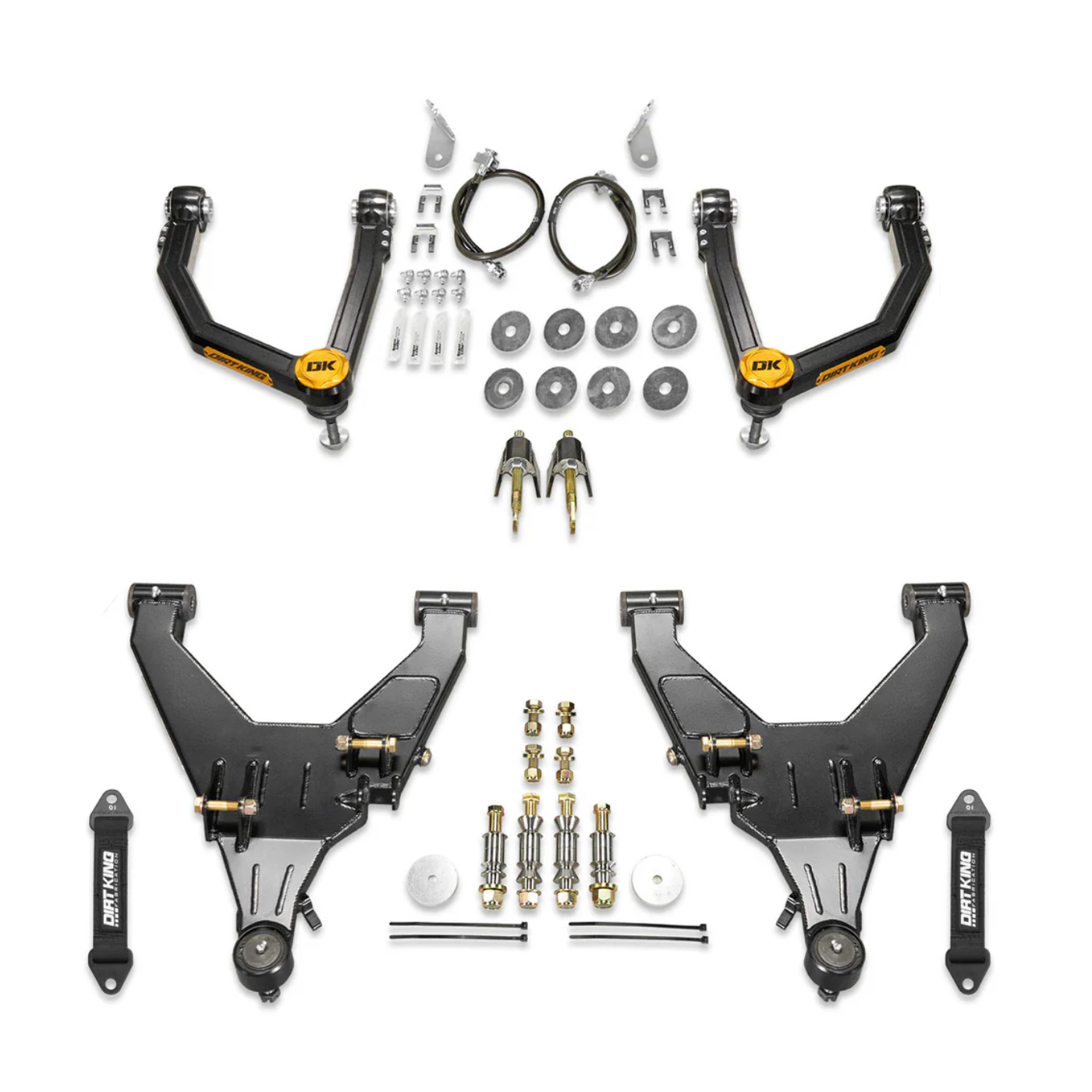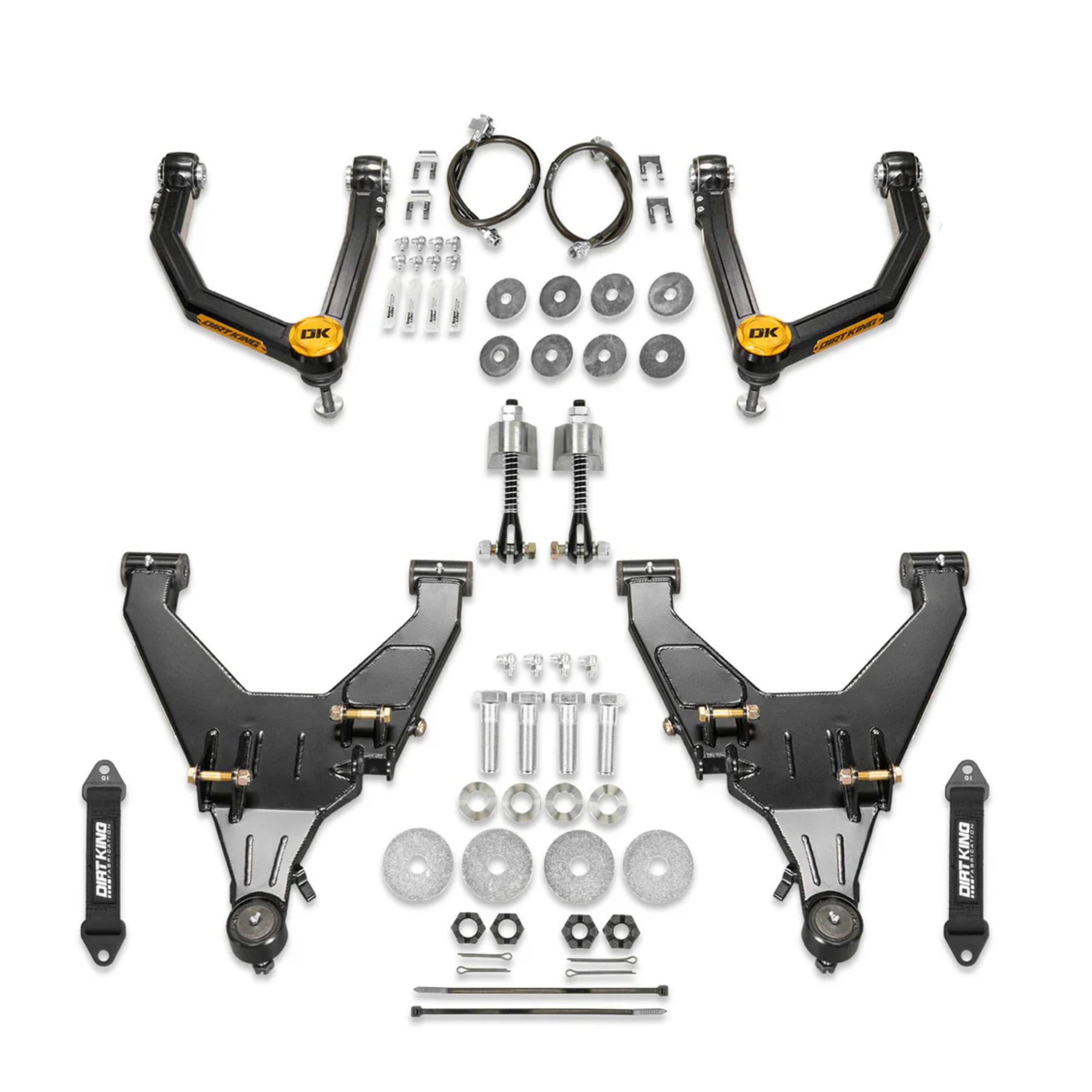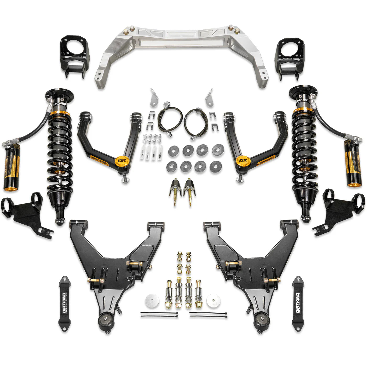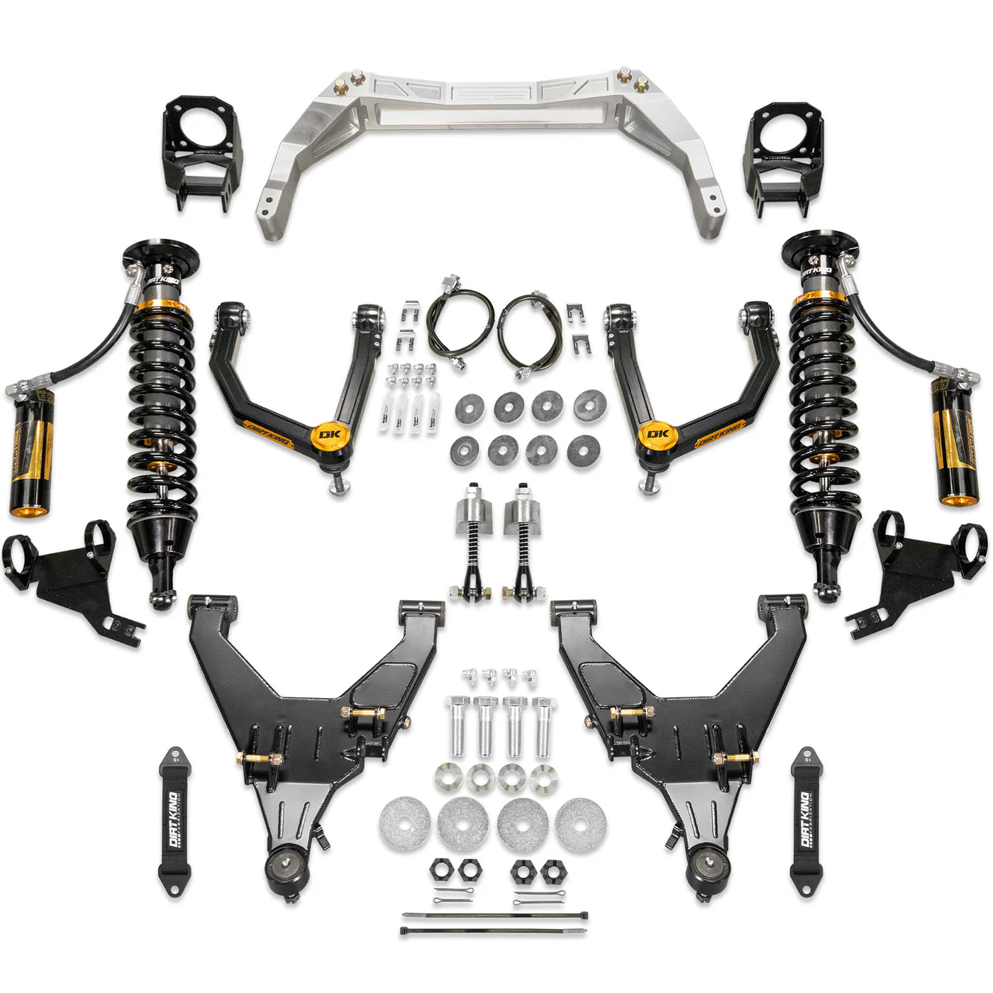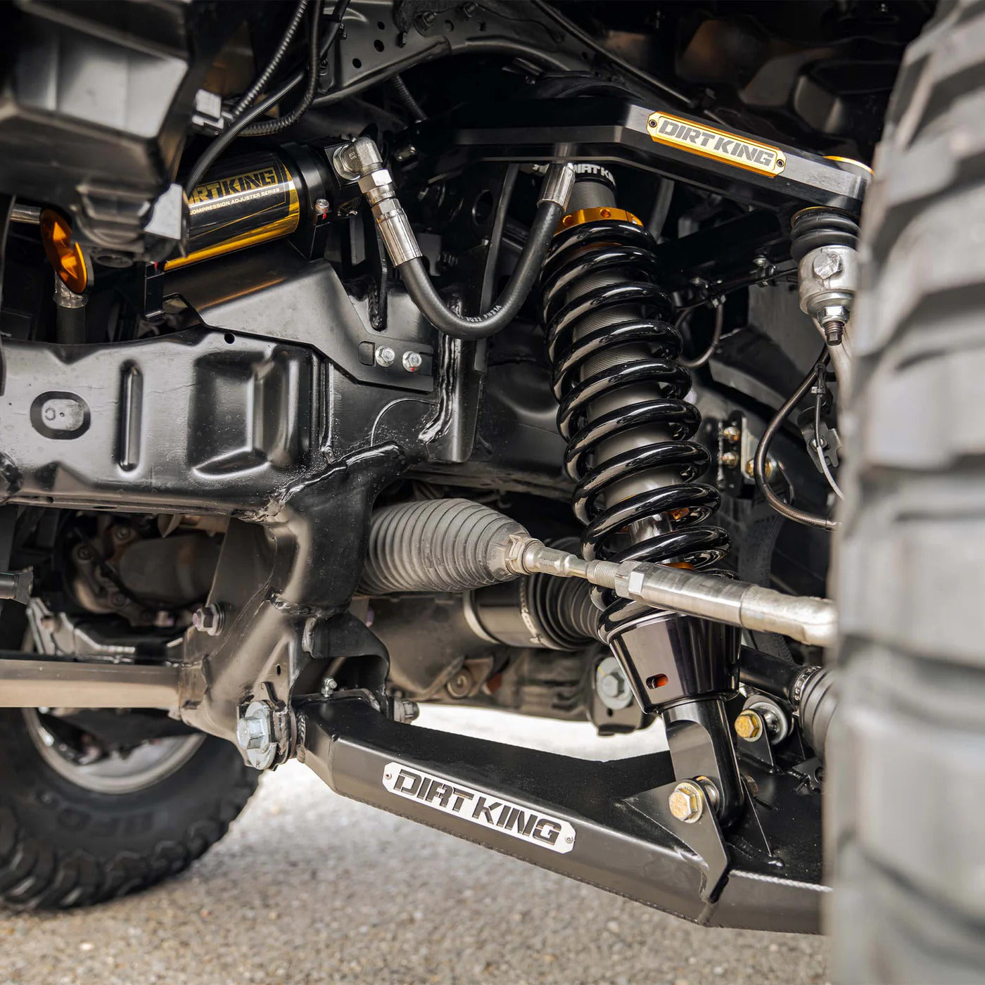 Engineered for superior off-road performance while still providing everyday on-road comfort. Our most advanced system yet—featuring billet upper control arms, optional billet bolt-on cross brace, and Dirt King LT shocks for a complete, next-level package.