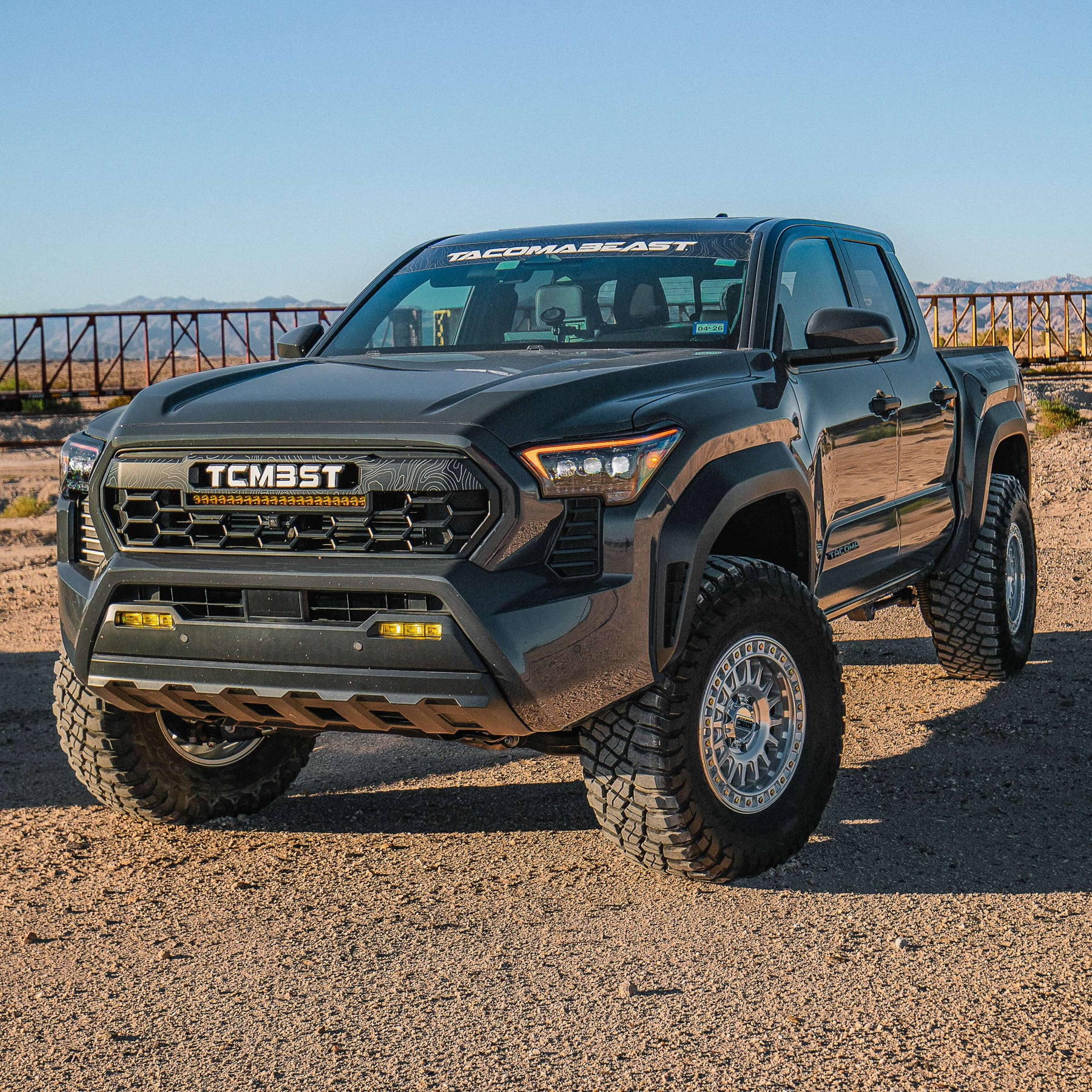Transform the front end of your 2024 Toyota Tacoma with our TCMBST Topography Grille! - A rugged, topo-inspired upgrade designed for those who want their truck to stand apart on the road or the trail. Featuring a bold hex-mesh layout, sleek satin topo overlay, and custom-designed TCMBST lettering, this grille will look sharp on the street and the dirt. It will give your truck a solid, mean-looking front end.